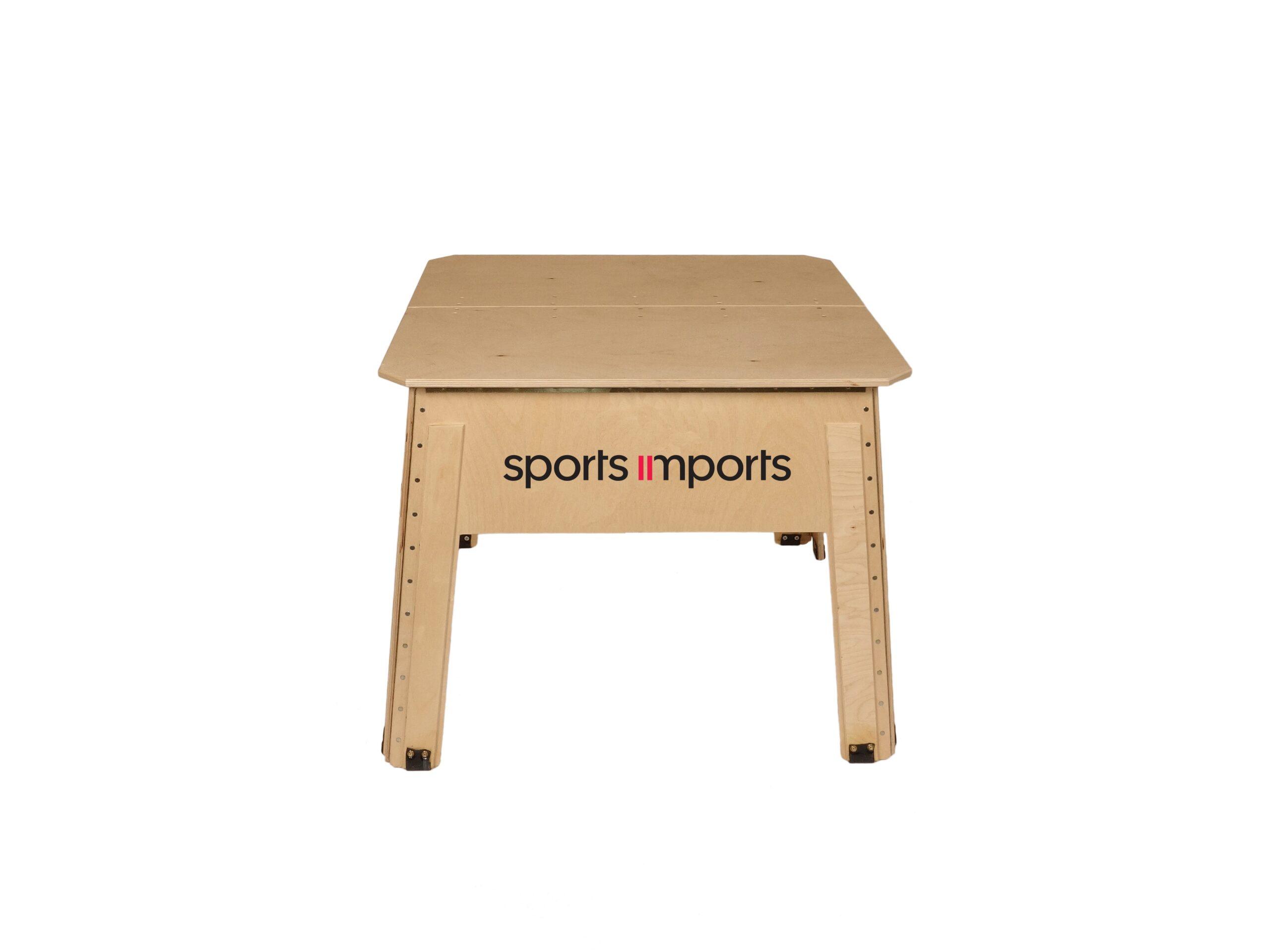 The Sports Imports 18″ Coaches Box is a sturdy platform for both volleyball players and coaches to stand on, hit on, block on, and have a player’s view of the court from an elevated surface. This volleyball hitting stand may be used for both indoor and beach volleyball training purposes. The Coaches Box is an efficient tool for helping coaches and players increase repetitions in practice without having to reset drills by changing players/coaches within the drill set. The Volleyball Coaches Box stands 18 inches tall, has a large platform, non-skid top, rubber feet and weighs only 28 pounds. The volleyball Coaches Box is 29″ long and 29″ wide. This platform is made of durable hardwood and is specially designed to set up and fold down with ease. The Volleyball Coaches box may be folded up and stored easily in tighter fitting storage areas too. The Coaches Box Carrying Strap is sold separately and attaches easily to the platform to make transporting the stand easier. If your team is looking for a wider platform, we recommend the CB18 XL Volleyball Coaches Box or the CB24 XL Volleyball Coaches Box.